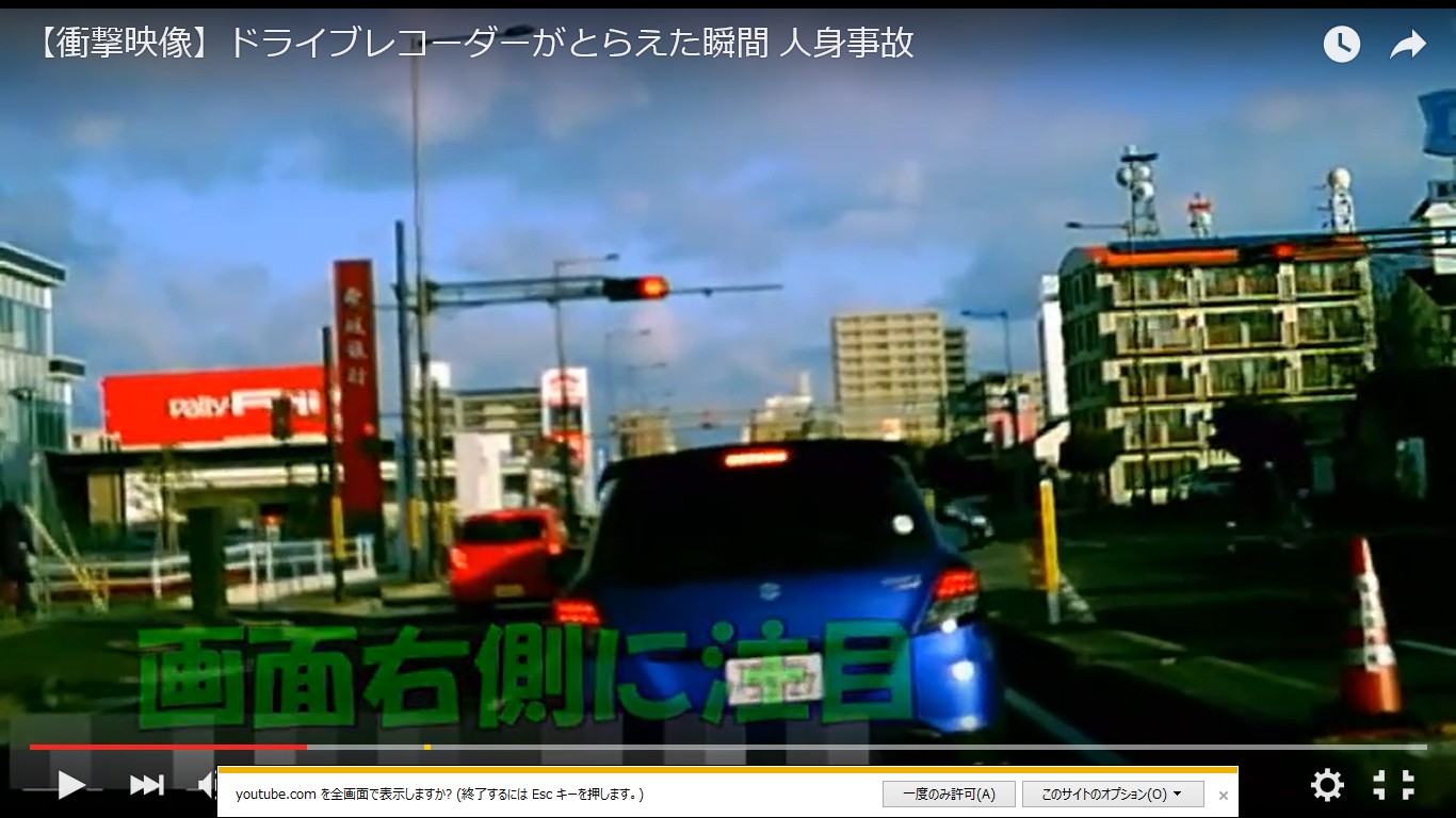 対向車線で乗用車と通学中の生徒さんが衝突。 その一部始終をドライブレコーダーが録画していた。 その衝撃映像がこちら! (対向車線での出来事なので、衝突の瞬間はとらえているが小さく映っているので そー、エグイ映像ではないけど、BGMがドキドキな感じになってます。 被害者の人も直ぐに立ち上がって流血は無しなので、ご覧下さい) 早朝のラッシュ時の出来事。お互いに急いでいたので、周りが見えていなかった のであろう。 さて、この映像をご覧になった人は、どう思ったでしょうか? 前方から来る自転車が見えなかったので、信号青で右折する車が衝突した。 いわゆる、前方不注意。と思う方も多数おられると思います。 まぁ、安物のドライブレコーダーゆえの不鮮明映像なので良く観ないと分かりませんがww 勝手に現場検証してみました。 これは、どちらが加害者?被害者?的な結論を出すものでは、無い事を最初に書いておきます。 さて、自転車は、青信号であるけれども 横断歩道を渡ってないようなきがします。 Youtubeの映像から、衝突前の1コマを抜き取りました。 画面の右側に自転車が見えます。 青い車の右側にチラッと黒い車が見えます。この車と自転車が後に衝突します。 上の画像では、イマイチ分かりにくいですね。 次の画像は、衝突の直前です。 見えにくいですが、横断歩道はもう少し先のような気がします。 と言うわけで、現地をDoogle Mapのストリートビューで見てみました。 赤い丸印が衝突ポイント。 もーちょい、アップで こちらを見てみると どうやら交差点内ではあるが、横断歩道上では、無い事が分かる。 乗用車のドライバーさんの目線からは、どう映ってたのでしょうか? 右側手からの自転車には、気がつかなかったのでしょうか? では、自転車側からのビューは、どうでしょう? 右折してくる乗用車が目に入らなかったのでしょうか? まぁ、どちらにせよ 急いでいたので、見えてなかったのか?良く分かりませんが、 我々もこーゆーケースの事故に巻き込まれる可能性はあると思われます。 気を付けたいものです。 勝手な現場検証でした。 安物のドライブレコーダーのYoutube動画もよろしい御仁は、ご覧ください。 Youtubeも頑張っております。 よろしい方は、チャンネルにもご訪問して、ご登録などしていただけたら、感謝します。 ↓ ↓ ↓ ↓ ↓ ↓ Bakabass002チャンネル ![]() PR