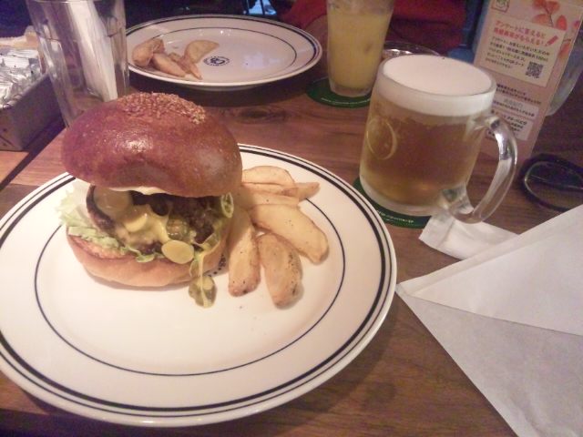 最初は、参加希望者18人程いたが、 結局、参加者6人になった。 マイクロバスでの飲みまくり旅行から、レンタカーを借りての旅行に転落。 運転手は、俺が… そんな訳でTOYOTAハイエースのハイルーフ10人乗りを借りた。 今のハイエースは、運転しやすい。人気があるのが良くわかる。 でも立体駐車は、NG。 出発の11月5日(土)は、あいにくの大雨。 宴会が20:00と遅いスタート。 仲間たちとバーガーカフェにて 軽く一杯♪ のつもりが…生ビールを2杯にコロナビールを3本にハンバーガーをヤッつけて上機嫌。 宴会前にお腹パンパンで 一次会でダウン。 健全なミナミの夜であった。 バーガー屋さんは、宿泊先のニューオオサカホテル心斎橋のお隣 CRITTER バーガー ハラペーニョチーズバーガー1000円なり 美味かった!!