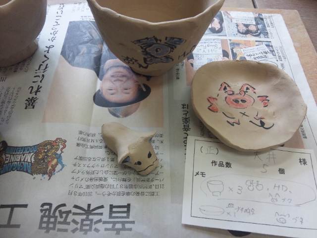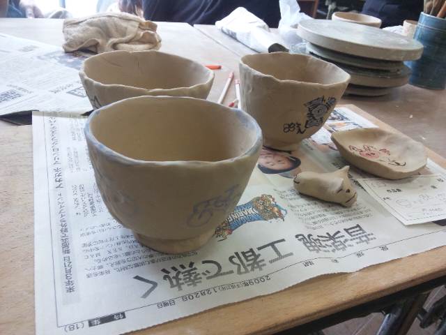 娘の小学校の学年PTA の行事に参加。 広田村の道の駅近くに 陶芸体験の施設があり、そこで砥部焼きの陶芸製作が簡単に学べる。 料金も粘土500gで1000円。 この料金で粘土をコネて、 好きな作品に仕上がるまでレクチャーが受けれる。 500gの粘土で茶碗と小さな皿か作れる量である。 私は、ワガママに2000円で1kgの粘土をオーダー。 できた作品に絵付けをして完成。 後は、作品を預けて焼き上がるのを待つだけである。 焼き上がりは、順番待ちで 我々は1か月先だそうだ。これまた忘れた頃に焼き上がった器を拝見も風流。 さて、粘土で作った器は焼き上がると大きさが1割~2割小さくなると言う。 因みに私は今回、焼酎をロックで頂くための茶碗を3つと、 小皿を1つ。 皿に余った粘土で豚の置物を作ったつもりが、牛のようになってしまった…置物を1つ。 合計5点、これで2000円は、安い。 |
