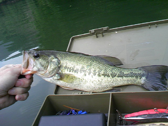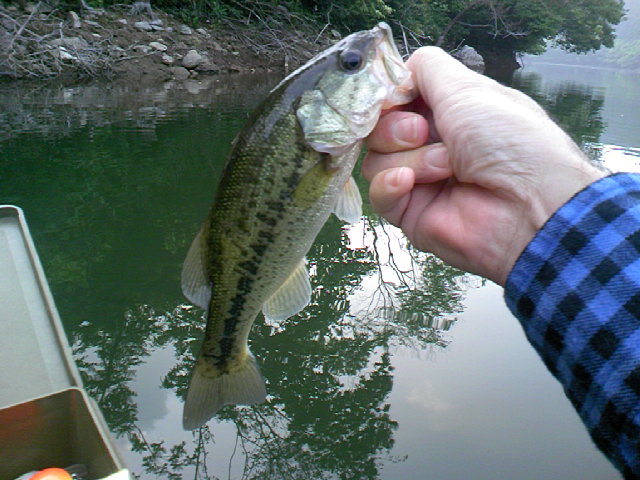 本日も野○ダムで浮いてきましたぁ \( ̄▽ ̄)丿~~~♂ 先週に比べて若干肌寒い 水温は温かい様な感じが…(あ~、温度計忘れた…(-"-;) 5:30過ぎ 先週と同じ場所へ到着 おっ!既にカートップが2台、更にもう1台 今週は賑わっとるのぉ~ ( ̄o ̄)/ さぁて入水 o( ̄- ̄)o Topは今回は休み スピナベでフィールドチェック シーン… ( ̄^ ̄;) 釣行リミットは8:30なんで 早速に先週ヒットのダウンショットリグ \(T▽T)丿 いやいや厳しいわ、バス状勢 まったくアタリ無し ( ̄Θ ̄#) 幸いギルがつついてくれよる ワームカラーは構わんのやなぁ バスレンジが悪いかぁ (; ̄_ ̄)=3 釣行約2時間バスアタリ無し う~ん、考えさせてくれよる 間もなくタイムリミットやのぉ 対岸で少し撃って帰るか しかし今日はボーター多いのぉ 先にポイント撃たれまくられてるの原因の一つか などとブツブツオッさんの独り言 たまにエンジンボーとがガーっ!行きよる (-_-#)凸 中にはデっかいので滑走 ゆっくり減速のお方もいらっしゃる まぁ引き波に関しては、滑走も減速もそう変わらんが 気持ちの問題じゃあ O( ̄ヘ ̄#)"O さて対岸ではカバーをテキサスでチェック 更にセンコーノーシンカーで 浮きブイやの浮きタイヤ目掛けて~ やっと来ました 来られました 先週よりサイズupの貴重な本日の一匹 う~ん、まだまだ修行が足りんのぉ