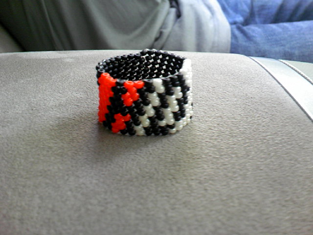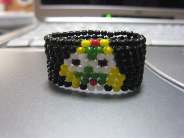 あっ!ちゅう間の3週間やった 正直、ビーズ三昧 v( ̄∀ ̄v) リハビリ筋トレ三昧 /( ̄^ ̄;)\ なんとか杖無しで歩ける様になったし 来週から職場復帰させて頂きます m(_ _)m 職場の皆様、長い間ご迷惑をおかけしました。またよろしくお願いします。 重ね重ねm(_ _)m さぁて、今回退院記念作品を紹介! ( ̄o ̄)/ トップバッターは ケロロ軍曹の顔 (・_・;) なんかぁイマイチでんな… まだまだ改良しまくらなアカんわぃ (-_-#) 続いて、ペヨーテステッチで作ったぁ ジオン公国軍のマーク入りリング ( ̄ω ̄;) すいません… ペヨーテステッチで作ったの初めて 設計段階ではバッチリ …な筈が、 ( ̄○ ̄;) インチキ臭い インベーダーにしか見えんやないかぇ (屮 ̄Д ̄)屮 いやぁ、ケロロと言い、ジオン公国軍マークと言い グダグダやんか 完成ほど遠いんちゃう? (-"-;) と、言う訳で 私 明日 退院 します ( ̄◇ ̄)ゞ お世話になりましたぁ