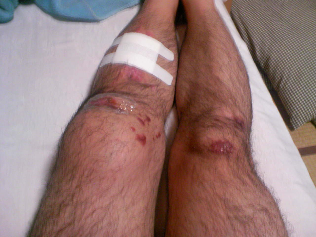 o(^-^)o 朝一、左膝確認! ...... ( ̄□ ̄;)!! 異様に肥大した膝…腫れがひいて無い。あぐらがかけたのに90度くらいしか曲がらん (;_;) 取り敢えず、リハビリに出撃ぃ~ あ~、左足が重たい… 俺リハビリ室へ→「おはようございま~す。お願いしま~す」 リハの担当先生「三連休に変わった事無かったですか?」 俺「実は、膝が…」 リハ先生...... ( ̄□ ̄;)!!「水が溜まってますね。これは痛くて膝が曲がらんでしょう」 俺「おー、やっぱし膝に水が溜まってたんですかぁ」 リハ先生「今から外来で予約して、整形に診てもらいましょう」 俺「よろしくお願いします…(いやぁ番長清原引退の特番でリハ療養中の清原と同じ腫れ方やもんなぁ…膝の水を注射器で抜く時、清原はうめきよったが俺も注射器で抜かれるんかぁ~もしや( ̄○ ̄;) リハビリで最低限の訓練…(おー足が痛いわぃ(>_<) 整形外来に呼ばれた 主治医先生「どうしました?」 俺「実は左膝が…」 主治医先生「あららら…どこまで歩いて来たの?」 俺「色々と…(説明)」 主治医先生「そりゃぁ歩き過ぎぃ~。溜まった水を抜きましょ。痛いよっ!」 ...... ( ̄□ ̄;)!!きたかぁ清原ぁ 注射器プスッ♂ ( ̄^ ̄#)おおっー! 思ったより痛くは無かったが… 取りました採られましたぁ\(≧▽≦)丿 100ccも…赤色混じりの膝の水 o(><;)(;><)o ( ̄○ ̄;)清原と同じ色やん… 主治医先生「いっぱい採れたねぇ。どう?」 俺「あ~、楽になったぁ(^o^)/」 膝も少しは楽に曲がる様になりましたぁ などと…前途多難な退院後の通院生活の第1ページが開かれました (屮 ̄Д ̄)屮 記念に膝の写メを って、気色の悪い画像をお見せしてすいませんm(_ _)m しかし、左右の膝…同じ人間の足とは思えん。