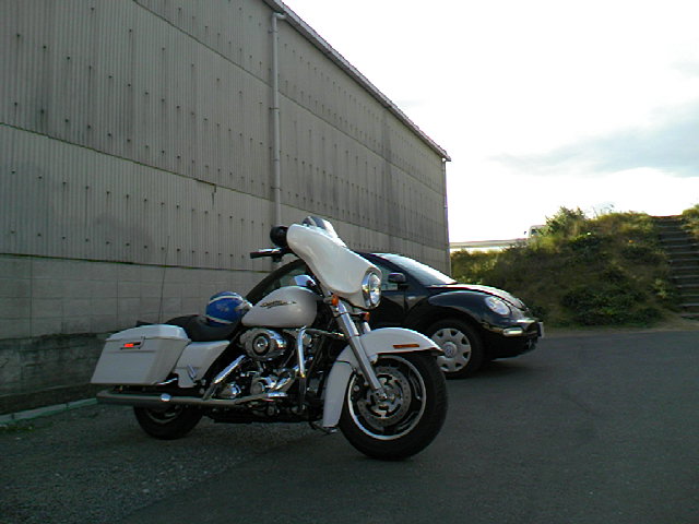 食材を買い終えて、ストグラのもとへ 本日、もつ鍋 ストグラのサイドバッグ 案外入ります キャベツや白菜、大根の大型野菜も楽勝 \(≧▽≦)丿 専業主夫ではーれー乗りのお方は、必見 ヾ(● ̄ ̄Σ ̄ ̄●)ノ 以前のダイナに装着してたのは、デグナー製のサイドバッグ A4サイズ 重宝してましたが、大型野菜のオンパレードには対応できやせん (ToT) それはさておき… いざエンジン始動と言う時… 「これってロードキングですよねっ」と、いきなりのご質問 ( ̄□ ̄;)!! ハッ! 私の頭中 「ローキンて…ヤッコカウル見た事ないんかいっ」などと…思いつつも・・・ ( ̄∇+ ̄)ニヤリ 「あ~、これはストリートグライドといいましてぇ~ローキンとは同じシリーズなんっスが・・・」とハーレー談義を交わし・・・ そのお方がなかなかお綺麗な方でして・・・ (ノ´▽`)ノオオオオッ♪ どうやらご主人がローキン乗りらしく ご主人のローキンのブログがあるそうで・・・ ブログ用の画像の撮影は全てこの美人なお方がするらしく・・・ 何枚か見せていただき・・・ ゚+.(ノ。・ω・)ノ*。オオォォ☆゚・:*☆ 熱い語りを聞かせていただき・・・ ストグラを納車して数日しか経っていない私には かなり嬉しい出来事で・・・御座いましたわい ワァァァ\(●▽●)/ 更にストグラの記念撮影をしたいとの事で・・・ 「ど~ぞど~ぞ」撮ってやってくださいましぃ~てな具合で・・・ さて携帯を片手にオロオロとしている様子 ( ̄ω ̄;)う~ん… そのお方 「どう撮ったら良いのかぁ?」との質問が・・・ 「やはりバイクは下から見上げるように屈んで取るのが一番ですよぉ~」と伝授 ( ̄∇+ ̄)ニヤリ 「あとケツからのビューもいいっスよぉ」などと・・・更に伝授 ノ( ̄∀+ ̄)=3 と、スーパーの駐車場で楽しいひと時で御座いましたぁ~ そのお方もブログを開設しておりまして、ペットのワンちゃん中心のブログでして・・・ 私もたまに、お邪魔させていただいております 残念ながら、記念撮影はストグラのみで美人のお方の画像をお見せできやせん ( ̄人 ̄)すんませ~ん ちなみにこの写真は、私が仕事帰りにいつも食材を調達するスーパーの駐車場でのストグラ