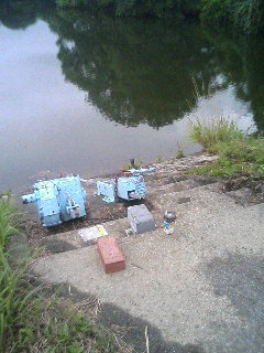 (゚m^;)やっちゃったぁ 見事なエラ洗いでバレちまった・・・( ̄▽ ̄;)!!ガァーン 「GN!交代じゃっ!」→しかし優しいGNは「続けてやれや~」(嬉-ω-人) センコーノーシンカーにチェンジして、キャースト!バシャっ!v( ̄∇+ ̄)ピース 着水と同時に、小バス君が喰ってくれた┗(^∇^*オツカレ♪” 「サンキューGN! 後は君だけのプライベートタイムでごわス。俺は操船に没頭するよん」 GNも2、3投後にヒーーーっト (*≧∇≦)/--------((祝))≧□≦)~☆グハッ しかーーし、痛恨のバラシ! これも大きかったよ。( ^^)/(; ;)ヨシヨシ それから、音沙汰なし・・・。雨も降ってきた Σ(司ο司)!! 雨粒も大きくなってきた。 「納竿でしょ」 私は、せっせとボートをしまい、池を去った。 GNよ、オカッパリでリベンジをしていたが、釣れたかい? また行きましょう!今度は、忘れ物をしないようにします(^^∂ポリポリ 最後に・・・この池でこんなものを発見! 釣り人よ、ゴミ捨てんじゃねぇ 凸(メ▼▼)オラー 捨てよるとこ発見したら、池で水泳さすどぉ~Oo(▼ヘ▼+)yー~~ |